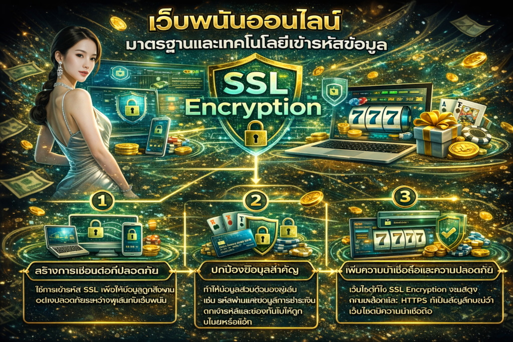 เว็บพนันออนไลน์ที่มีมาตรฐานจะใช้เทคโนโลยีเข้ารหัสข้อมูล เช่น SSL Encryption เพื่อป้องกันการดักจับข้อมูลระหว่างการส่งผ่านอินเทอร์เน็ต นอกจากนี้ยังมีระบบป้องกันการโจมตีจากภายนอก เช่น Firewall และระบบตรวจจับพฤติกรรมผิดปกติ